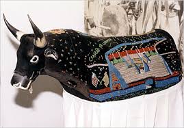 Misture cola plástica com água em partes iguais e cole pedacinhos de jornal em todo o seu boi, faça isso com pelo menos 3 camadas desta mistura. Se quiser cole pedacinhos de papel de seda pela parte de baixo toda, só nas bordas.