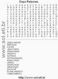 É um quadro com diversas letras onde você encontra palavras em diagonal, normal, de trás para frente etc... Essas palavras você procura conforme as palavras em negritos dos textos ou em listas.